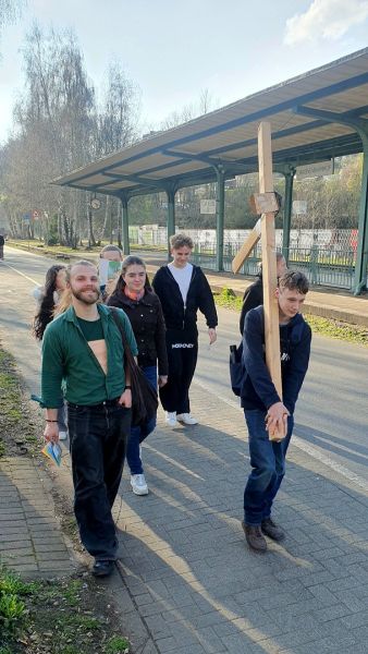 Dabei wurde auch deutlich: Der öffentliche Charakter des Kreuzwegs war für viele zunächst ungewohnt. In der Öffentlichkeit zu beten, zu singen und das Kreuz zu tragen, fühlte sich für einige fremd an. Doch gerade darin lag eine besondere Erfahrung: Alle konnten sich darauf einlassen und aktiv mitgehen. 💪