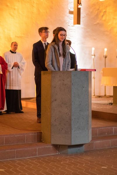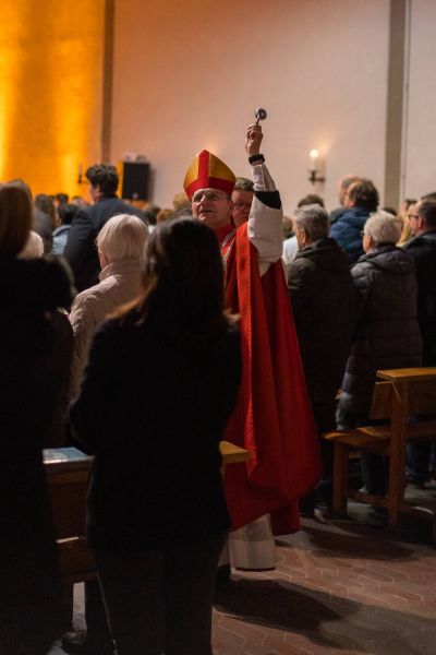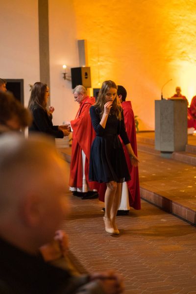 In der festlich illuminierten Kirche, begleitet vom Jugendchor und der Jugendband spendete Weihbischof Dr. Dominikus Schwaderlapp 34 Jugendlichen unserer Pfarreien das Sakrament der Firmung.