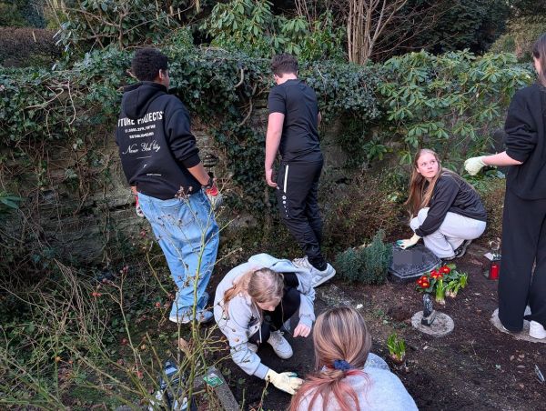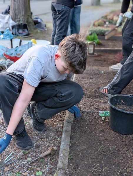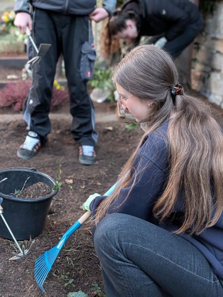 Zuerst hieß es: aufräumen und freilegen. Unkraut musste entfernt, heruntergefallene Blätter und Äste beseitigt werden. Manchmal war dabei schon etwas Kraft gefragt, denn so manche Wurzel wollte ihren Platz nicht freiwillig räumen.