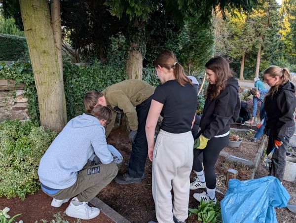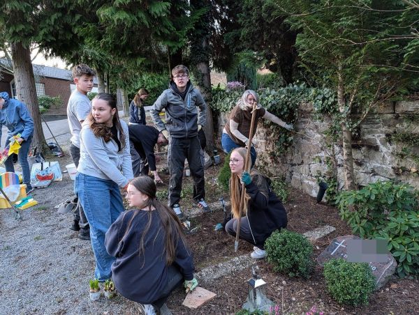 Heute Nachmittag standen 22 Firmlinge bereit, um gemeinsam etwas Gutes zu tun. Unterstützt von vier Katecheten ging es nach einer kurzen Einweisung direkt los. Unser Ziel: sechs Gräber, die leider schon lange niemand mehr pflegt.