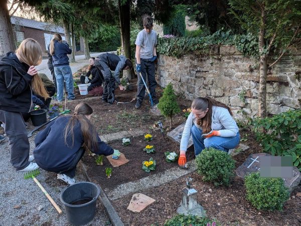 Mit der Zeit wurde aus Arbeit fast schon kreative Gestaltung. Einige Firmlinge entwickelten dabei regelrechten künstlerischen Ehrgeiz: Blumen wurden arrangiert, Steine platziert, Engel-Figuren sorgfältig ausgerichtet. Schritt für Schritt entstanden aus verwilderten Grabstellen wieder würdige und schöne Orte.