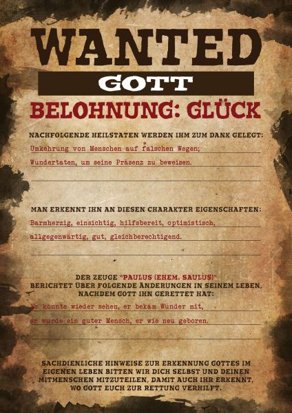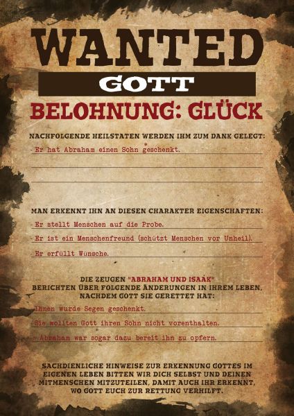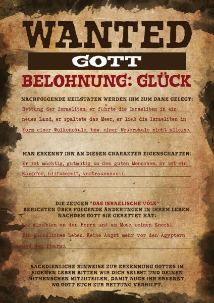 Anschließend galt es zunächst die Geschichte zusammenfassend der Gruppe zu erzählen und einen Steckbrief für die Suche nach Gott zu erstellen.