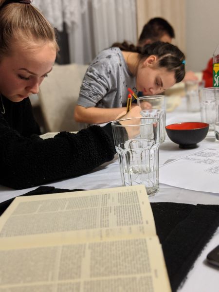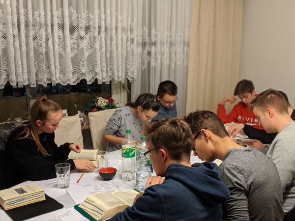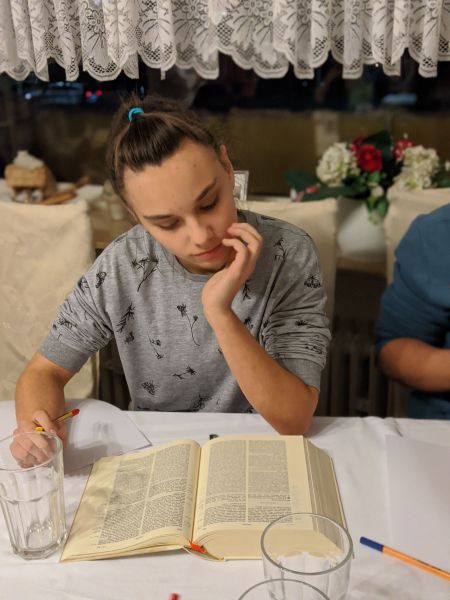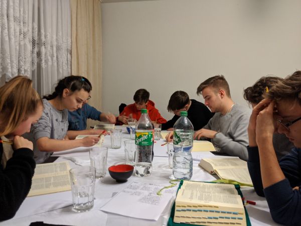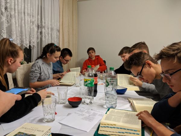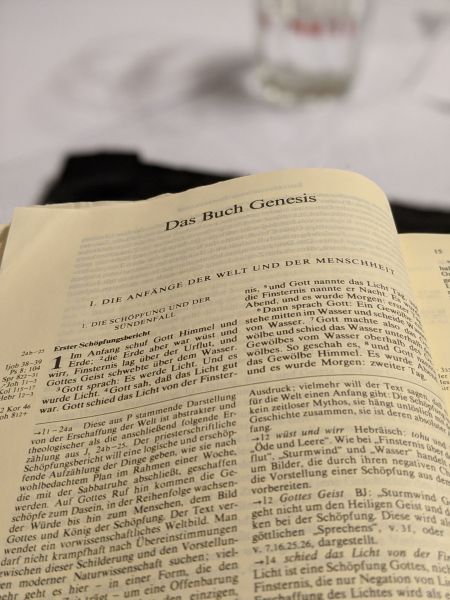 Wir begannen unsere Stunde wie immer mit einer Lesung aus der Bibel mit dem Unterschied, dass diesmal nicht einer von uns alleine eine Bibelstelle vorgelesen hat, sondern wir alle gemeinsam die Schöpfungsgeschichte gelesen haben.