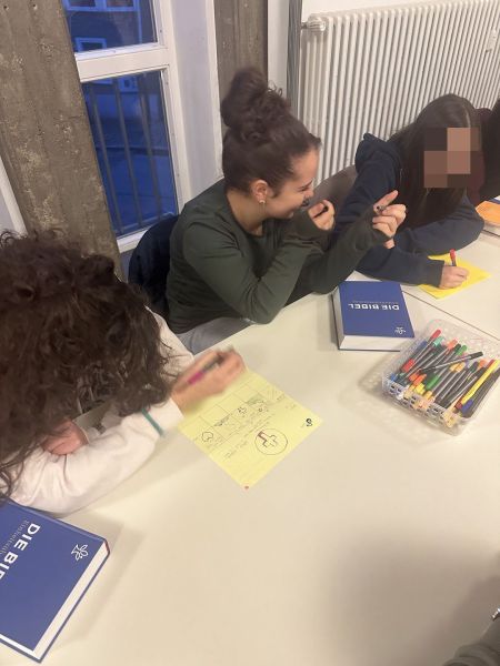 Danach wurden einige Bibelstellen vorgelesen und wir haben gemeinsam überlegt, wo Jesus heute vielleicht unerkannt wirken könnte und in welchen Menschen man ihn erkennen kann.
