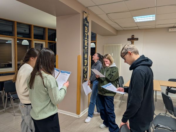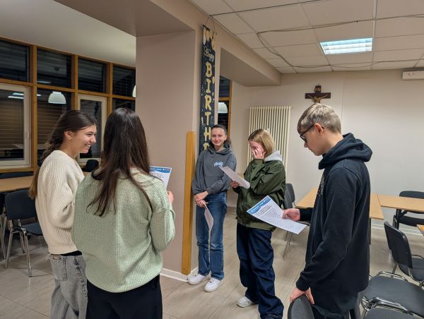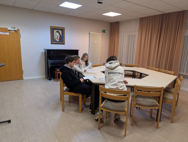 Danach haben wir uns die Geschichte von Adam und Eva angehört, in der sie vom verbotenen Apfel essen, obwohl Gott gesagt hat, dass sie das nicht dürfen. Anschließend haben wir die Geschichte in kleinen Gruppen als Theater nachgespielt. Das hat viel Spaß gemacht und wir haben viel zusammen gelacht.