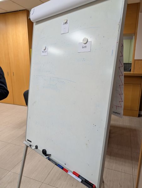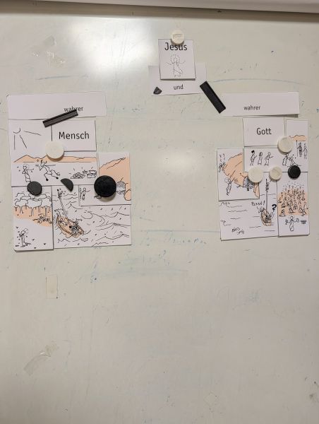 Der inhaltliche Kern des Abends führte uns schließlich zu der Frage, wer dieser Jesus eigentlich wirklich war. In Kleingruppen analysierten die Firmlinge verschiedene Bibelstellen und versuchten, seine Taten einzuordnen: Handelt er hier als Mensch, der Hunger und Angst verspürt, oder als Gott, der Stürme stillt und Tote erweckt? Anhand eines Puzzles fügten sich die Beobachtungen zusammen, bis die zentrale Antwort feststand: Jesus ist wahrer Mensch und wahrer Gott zugleich. Diese Doppelnatur ist weit mehr als eine theologische Formel: sie bedeutet, dass Jesus unsere menschlichen Sorgen aus eigener Erfahrung kennt und gleichzeitig als Vermittler den direkten Draht zu Gott verkörpert. So endete der Abend mit der Erkenntnis, dass unser Glaube genau wie die mitgebrachten Pflanzen von dieser lebendigen Verbindung lebt.