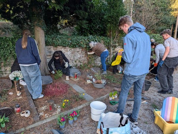 Mit der Zeit wurde aus Arbeit fast schon kreative Gestaltung. Einige Firmlinge entwickelten dabei regelrechten künstlerischen Ehrgeiz: Blumen wurden arrangiert, Steine platziert, Engel-Figuren sorgfältig ausgerichtet. Schritt für Schritt entstanden aus verwilderten Grabstellen wieder würdige und schöne Orte.
