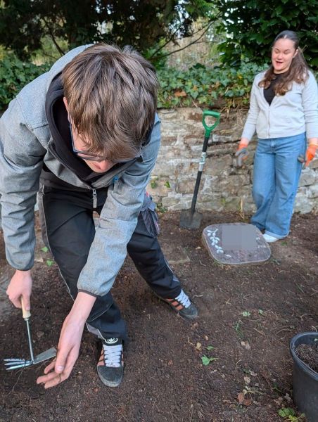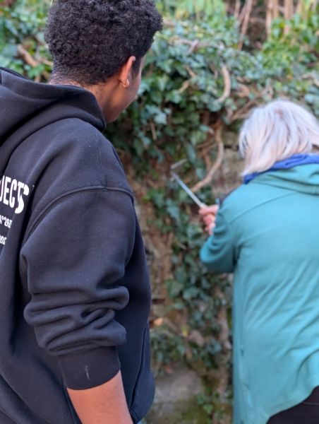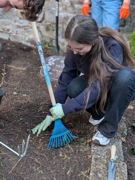Zuerst hieß es: aufräumen und freilegen. Unkraut musste entfernt, heruntergefallene Blätter und Äste beseitigt werden. Manchmal war dabei schon etwas Kraft gefragt, denn so manche Wurzel wollte ihren Platz nicht freiwillig räumen.
